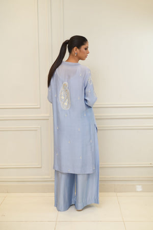 Step into a world of enchantment and allure with our Azure Dreams ensemble. Bathed in the mesmerizing hues of firozi, and adorned with intricate Arr work, this ensemble transcends the ordinary to unveil a realm of ethereal beauty and sophistication.
