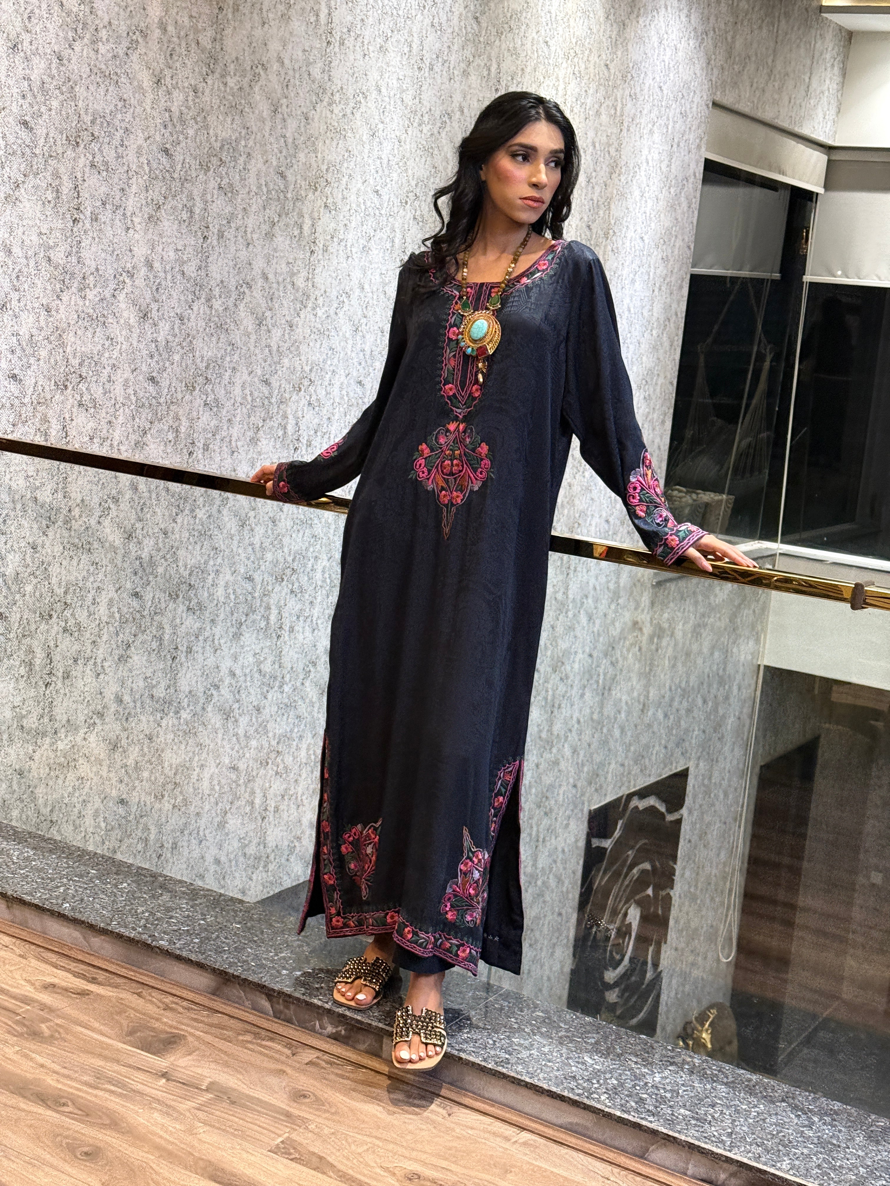 Fabric Winter Soft Marina with machine multicolor embroidery