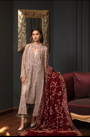 Elevate your style with our Gorgeous Grey Velvet Shawl, an epitome of luxurious elegance. Crafted from the finest velvet, this exquisite shawl features a sophisticated grey hue that effortlessly complements any outfit. Perfect for special occasions or adding a touch of glamour to your wedding day, this shawl promises to wrap you in unmatched beauty and warmth.